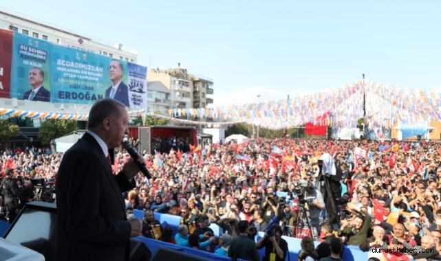 Cumhurbaşkanı Recep Tayyip Erdoğan, "Hiçbir şey üretmeden, program, proje geliştirmeden, milleti kendilerine mahkum etmek isteyenlerin heveslerini kursaklarında bırakmak boynumuzun borcudur. Bırakın dünyada ve Türkiye'de ne olup bittiğini, kendi memleketleriyle bile ilgilenme gereği duymuyorlar. Böyle siyaset olmaz. (CHP) Kendilerini pazarlıklara öyle kaptırdılar ki Manisa Saruhanlı'da olduğu gibi aday listelerini seçim kurullarına zamanında veremediler. 3-5 belediye alacağız diye siyasi bölücülere bu derece teslim olunmaz. (Muhalefete)Kadınlarımızın, gençlerimizin, çalışanlarımızın, emeklilerimizin beklentileri, hakları bu kifayetsiz muhterislerin insafına bırakılamaz." dedi.Cumhurbaşkanı Erdoğan şunları söyledi:"Ekonomideki sıkıntıların yıl sonundan itibaren hafiflemeye başladığını, önümüzdeki yıldan itibaren yeniden yükselişe geçeceğimizi hep birlikte göreceğiz"