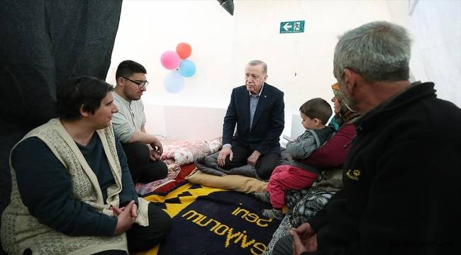 Çadır kentte kalan depremzedeleri ziyaret eden Erdoğan, çocuklarla sohbet etti, vatandaşların sıkıntılarını dinledi.Vatandaşlara geçmiş olsun dileğinde bulunan Cumhurbaşkanı Erdoğan'a, evi yıkılan bir depremzede, "Evim tamamen yıkıldı, tek umudumuz sizin evlerimizi yapmanız, başka umudumuz yok. Yapacak durumumuz da yok, maddi durumumuz belli. Sizden çok umudumuz var." dedi.