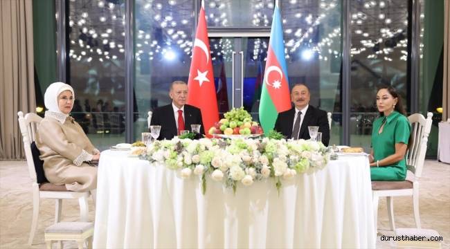 Cumhurbaşkanı Erdoğan ile eşi Emine Erdoğan, Dışişleri Bakanı Hakan Fidan, Enerji ve Tabii Kaynaklar Bakanı Alparslan Bayraktar, Milli Savunma Bakanı Yaşar Güler, Ulaştırma ve Altyapı Bakanı Abdulkadir Uraloğlu, AK Parti Genel Başkan Yardımcısı ve Parti Sözcüsü Ömer Çelik, Cumhurbaşkanlığı İletişim Başkanı Fahrettin Altun, MİT Başkanı İbrahim Kalın ve Cumhurbaşkanlığı Savunma Sanayii Başkanı Haluk Görgün de Azerbaycan'a geldi.