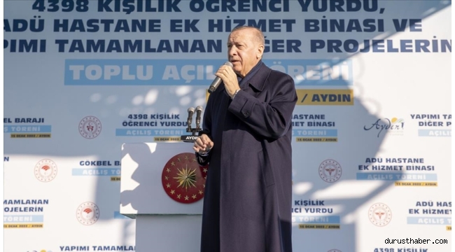 Fabrikanın, Türkiye'nin yıllık 250 milyon dolarlık kağıt ithalatının önüne geçeceğini, 200 milyon dolarlık da ihracat yapacağını vurgulayan Erdoğan, şunları belirtti:"Türkiye'yi yatırım, istihdam, üretim, ihracat ve cari fazla yoluyla büyütme hedefimize önemli bir katkı yapacak bu yatırımın ülkemize ve Aydın'ımıza hayırlı olmasını diliyorum. Ülkemizin ve milletimizin içi boş tartışmalara, yalan ve iftira üzerine kurulu polemiklere, terör örgütlerinin payandalarıyla yol yürüyen siyasetçilere değil, işte bu tür eserlere, hizmetlere ihtiyacı vardır. Şair ne diyor? 'Ayinesi iştir kişinin lafa bakılmaz, şahsın görünür rütbe-i aklı eserinde. Eşek ölür kalır semeri, insan ölür kalır eseri.' Ülkemize ve milletimize kazandırdığımız eserlerimizle, hizmetlerimizle konuşmaya, övünmeye devam edeceğiz. İnsanımıza iş, aş sağlayacak, geleceğine güvenle bakmasını temin edecek her gayretin yanındayız, yanında duracağız. Bugün burada açılışını yaptığımız tüm bu eser ve hizmetlerin Aydın'ımıza, ülkemize, sizlere hayırlı olmasını diliyorum. Bu yatırımların şehrimize kazandırılmasında emeği geçen bakanlıklarımızı, kurumlarımızı, firmalarımızı, mühendisinden işçisine herkesi tebrik ediyorum."Türkiye'nin demokrasi ve kalkınma mücadelesinin bayrak şehri Aydın'da geçmişten bugüne ve geleceğe uzanan samimi bir hasbihal yapacağını, dertleşeceğini aktaran Erdoğan, "Öyle bir dertleşelim ki Haziran 2023'te artık bu işi Aydın'da bitirelim." ifadesini kullandı.Türkiye'nin, dünyanın pek çok tarihi atılım yaşadığı son 2 asrını siyasi, askeri, ekonomik kayıplarla ve istiklal mücadeleleriyle geçirdiğini hatırlatan Erdoğan, Osmanlı'nın yıkılışından sonra kurulan Cumhuriyet döneminde de bu mücadelelerin süregeldiğini hatırlattı.