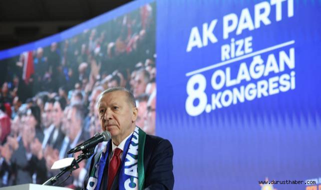 Cumhurbaşkanı ve AK Parti Genel Başkanı Recep Tayyip Erdoğan, Yenişehir Spor Salonu'nda düzenlenen AK Parti Rize 8. Olağan İl Kongresi'ne katıldı.Buradaki konuşmasına Rize'de olmaktan duyduğu mutluluğu dile getirerek başlayan Erdoğan, "Yeşiline, mavisine, yaylasına, deresine, suyuna, havasına vurgun olduğum, her şeyden önemlisi insanına aşık olduğum ana yurdum, baba ocağım Rize'de bizleri tekrar buluşturan Rabbime hamdolsun." ifadelerini kullandı.Kongrenin hayırlı olmasını dileyen Erdoğan, şöyle devam etti:"Şu an canlı bağlantıyla bizleri takip eden Bitlis, Karaman, Kırıkkale, Niğde ve Kırklareli'ndeki kardeşlerime de selam ve sevgilerimi gönderiyorum. Bizimle eş zamanlı olarak yapılan bu il kongrelerimizin de hayırlara vesile olmasını temenni ediyorum. Vefat eden yol arkadaşlarımıza, teşkilat mensuplarımıza Rabbimden rahmet niyaz ediyorum. Taze bir heyecanla, hizmet aşkıyla bayrağı devralan kardeşlerimize başarılar diliyorum. Nöbeti devreden arkadaşlarımıza emeklerinden dolayı şükranlarımı sunuyorum. Rabbim gayretimizi artırsın, emeğimizi zayi etmesin, bizleri sırat-ı müstakimden, ülkeye ve millete hizmet yolundan ayırmasın. Karadeniz'e, Karadenizliye, Rize'ye, Rizeliye yakışan da budur."