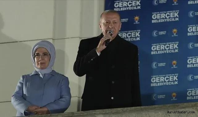 Cumhurbaşkanı Recep Tayyip Erdoğan, AK Parti Genel Merkezi'nde vatandaşlara hitap etti.Cumhurbaşkanı Erdoğan, "Milletin iradesinin sandıkta tecelli eder, millet sözünü sandık yoluyla söyler, siyasetçilere mesajını sandık vasıtasıyla iletir. Millet sandığı vesile kılarak mesajlarını siyasetçilere ulaştırmıştır. Sonuçlardan bağımsız olarak bu seçimin galibi demokrasimizdir, milli iradedir." dedi."Sandığın gücüne güç katan herkes kazanmıştır"31 Mart'ın bir dönüm noktası olduğuna işaret eden Erdoğan, "31 Mart bizim için bir bitiş değil aslında bir dönüm noktasıdır. Bugün AK Parti'ye ve Cumhur İttifakı'na oy verenlerle birlikte demokratik haklarını kullanarak sandığın gücüne güç katan herkes kazanmıştır." diye konuştu.