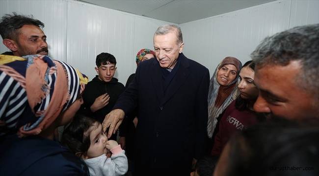 Daha sonra konteyner kente gelen Cumhurbaşkanı Erdoğan, buradaki depremzedelerle sohbet etti, sıkıntıları dinledi.Vatandaşlara geçmiş olsun dileğinde bulunan Erdoğan'a, depremzede bir kadın "toprak su kabı" verdi.Cumhurbaşkanı Erdoğan'a konteyner kenti ziyaretinde, Bahçeli ve Destici'nin yanı sıra Malatya Büyükşehir Belediye Başkanı Selahattin Gürkan da eşlik etti.