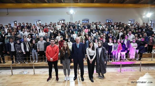 İstinye Üniversitesinde Aşçılık Sanatları Bölümü 1. sınıf öğrencisi olan Elif Azra Şenyurt, annesinin Erdoğan ile anısını, "Annem sizin davanıza, hepimizin davasına sevdalı bir Türk kadını. Siz onu gördüğünüzde annem hamileymiş. 2004 senesi, benim doğum yılım. Annemin karnındaymışım. Siz de annemi gördüğünüzde, 'Allah yolunu, bahtını açık etsin. Vatana, millete hayırlı bir evlat eylesin.' demişsiniz." sözleriyle anlattı.Şenyurt'un 18 yaşında olduğunu söylemesi üzerine Cumhurbaşkanı Erdoğan, oy kullanıp kullanmadığını sordu. Şenyurt, "Oy kullandım Sayın Cumhurbaşkanım. 'İlk oyum Erdoğan'a.' dedim." ifadesini kullandı.Vatana, millete hayırlı bir evlat olmak için çabaladığını belirten Şenyurt'un, "Devlet büyüklerinin de duaları kabul olurmuş." demesi üzerine Erdoğan, "Rabbim inşallah gönlünden geçeni nasip etsin." şeklinde dua etti.Şenyurt, Türkiye Yüzyılı'nda atılan hızlı adımları yakından takip ettiğini, savunma sanayisine ilgi duyduğunu dile getirerek, Erdoğan'dan gençler için bir şiir okumasını rica etti.Cumhurbaşkanı Erdoğan, "Yani bizi zor bir yere doğru sürdün. Ezberimde o olduğu için onu okuyayım ben yine de. Akif'ten. Asım'ın neslini tanıtıyor. Asım'ın nesli nasıl, kim?" diyerek, şu dizeleri okudu:"Zulmü alkışlayamam, zalimi asla sevemem/ Gelenin keyfi için geçmişe kalkıp sövemem/ Biri ecdadıma saldırdı mı hatta boğarım/ Boğamazsam da hiç olmazsa yanımdan kovarım/ Üç buçuk soysuzun ardında zağarlık yapamam/ Hele hak namına haksızlığa ölsem tapamam/ Doğduğumdan beridir aşıkım istiklale/ Bana hiç tasmalık etmiş değil altın lale/ Yumuşak başlı isem kim dedi uysal koyunum/ Kesilir belki fakat çekmeye gelmez boynum/ Kanayan bir yara gördüm mü yanar ta ciğerim/ Onu dindirmek için kamçı yerim, çifte yerim/ Adam aldırma da geç git diyemem, aldırırım/ Çiğnerim, çiğnenirim, hakkı tutar kaldırırım/ Zalimin hasmıyım amma severim mazlumu."Ankara Üniversitesi Hukuk Fakültesi mezunu 25 yaşındaki Sevde Betül Ağzıkara, vefat eden dedesinin evinde bulduğu ve Milli Selamet Partisi'nin 1977 seçimlerinden önce dağıttığını düşündüğü bir çay bardağını hatıra olarak Erdoğan'a hediye etti.Ağzıkara'nın, İstanbul il gençlik kolları başkanlığına denk gelen o dönem hakkında anılarını paylaşmasını istemesi üzerine Erdoğan, şunları kaydetti:"Siyasette, şu andaki bulunanlar veya bay bay Kemal, yani onun böyle siyasete gençlik kollarından girme, oralardan gelme gibi bir geçmişi yok. Siyasette şu anda bulunanlarda da benim durumumda olan yok. Çünkü ben gençlik kollarından itibaren siyasetin içinden yetişmiş, siyasetin içinden gelmiş ve siyasette 40 yılı aşkın bir dönemim var. İstanbul gibi bir şehrin gençlik kolları başkanlığını yapmış birisiyim. Oradan itibaren bugünlere geldik. Tabii, Milli Selamet Partisi, Refah Partisi, Refah Partisi'nden sonraki süreç ve o süreç içinde yaşadığımız birçok sıkıntılar vesaire, bütün bunlarla beraber özellikle de belediye başkanlığı sürecim... Belediye başkanlığı sürecim de tabii 4,5 yıl falan idi, cezaevine giriş ve cezaevinden çıktıktan sonra da AK Parti'yi kuruşumuz."Erdoğan, AK Parti'yi kurduktan 16 ay sonra tek başlarına iktidar olduklarını, bunu çok kısa bir zamanda yakaladıklarını, yüzde 34 gibi bir oyla da parlamentoda birinci parti olduklarını anlattı.Birinci parti olmakla kalmayıp, Türkiye'nin yeniden dönüşümüne parlamentodaki bu güçleriyle yol verdiklerini söyleyen Erdoğan, "Gerçekten bu, AK Parti'nin çok çok güçlü bir gelişini doğurdu ve bu güçlü geliş nereye dayanıyordu; işte ta Milli Selamet Partisi'ndeki o gençlik dinamizmine, oradan aldığımız siyasi tecrübeye, bu şekilde tabii buralara geliş oldu." dedi."AK Parti'yle Türkiye'de yeni bir değişim, dönüşüm yakalandı"