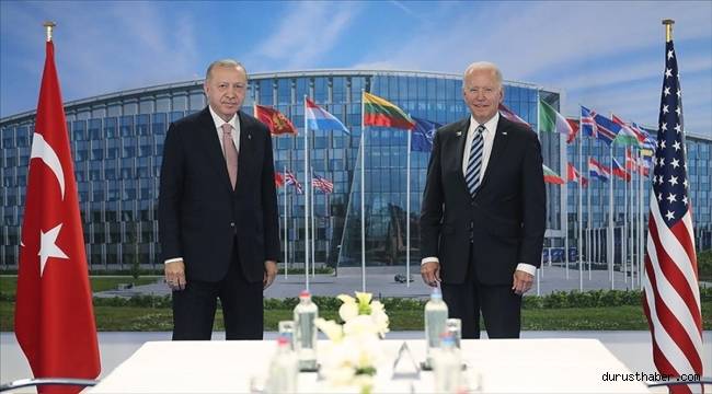 Liderler, Vilnius'ta yüz yüze görüşme ve Türkiye-ABD ikili ilişkileri ile bölgesel konuları ayrıntılı şekilde ele alma hususlarında mutabık kaldı.Cumhurbaşkanı Erdoğan, İsveç'in, terörle mücadele mevzuatında değişiklikler yaparak doğru yönde bazı adımlar attığını, ancak terör örgütü PKK/PYD/YPG yanlılarının serbestçe terörü öven gösteriler yapmaya devam etmesinin atılan adımları boşa çıkardığını belirtti.Türkiye'nin F-16 talebinin, İsveç'in üyeliğiyle ilişkilendirilmesinin doğru olmadığını vurgulayan Erdoğan, ABD Başkanı Biden'a, Türkiye'nin F-16 talebine yönelik gösterdiği destek için teşekkür etti.Türkiye'nin, AB'ye üyelik konusunda ilkeli ve dürüst olduğunu ifade eden Erdoğan, AB'ye tam üyelik sürecini canlandırmak istediklerini, Vilnius Zirvesi'nde, AB'nin önde gelen ülkelerinin ve AB liderliğinin, Türkiye'nin üyeliğine açık ve güçlü destek mesajı vermelerini istediklerini kaydetti.
