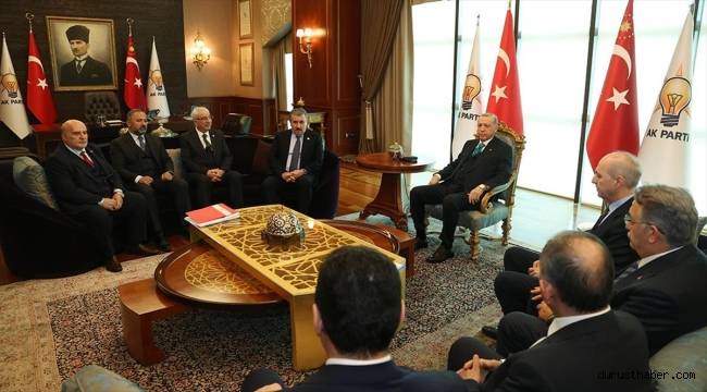 "Erdoğan Dijital Medya" hesabından yapılan paylaşımda Cumhurbaşkanı Erdoğan'ın 13 Mart Pazartesi Büyük Birlik Partisi (BBP) Genel Başkanı Mustafa Destici ve beraberindeki heyet ile Yeni Azerbaycan Partisi Genel Başkanvekili Tahir Budaqov ve beraberindeki heyeti kabul ettiği belirtildi.