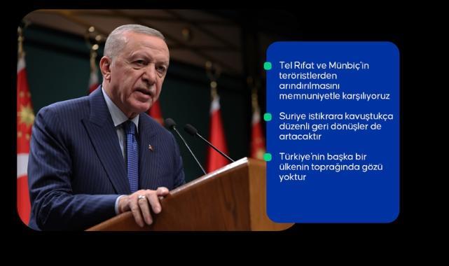 Beştepe'de toplanan kabine sonrası konuşan Cumhurbaşkanı Recep Tayyip Erdoğan, Baas diktatörlüğünün tamamen çöktüğünün altını çizerek, "Eski rejimin çekilirken dahi kimi şehirleri bölücü terör örgütünün Suriye uzantısına bırakması aralarındaki kirli ittifakı bir kez daha teyit etmiştir." ifadesinde bulundu.