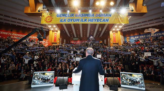 Cumhurbaşkanı Recep Tayyip Erdoğan, Erzurum Atatürk Üniversitesi'nde düzenlenen "İlk Oyum AK Parti'ye İlk Oyum Erdoğan'a Programı"nda gençlerle bir araya geldi.Türkiye için hayal kuran, hayallerinin peşinden giden gençlere selam ve sevgilerini göndererek sözlerine başlayan Erdoğan, 1,5 yıl aradan sonra Erzurum'da bulunmaktan, Erzurumlu gençlerle kucaklaşmaktan büyük mutluluk duyduğunu ifade etti, açılışını yaptıkları eser ve hizmetlerin hayırlı olmasını diledi.