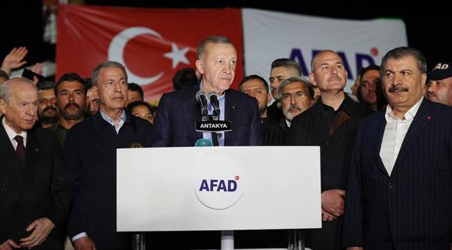 Cumhurbaşkanı Recep Tayyip Erdoğan, Antakya'da, Katar'dan gelen konteynerlerin kurulduğu alanı ziyaret etti.Cumhurbaşkanı Erdoğan, "Evi yıkılan veya kullanılamaz hale gelen hiçbir vatandaşımızın mağduriyetine meydan vermeden, herkesi sağlam, güvenli, huzurlu yuvalarına kavuşturacağız." açıklamasında bulundu.Cumhurbaşkanı Erdoğan, depremzedelere ilişkin "Bir yıl sonra Antakya'da sizlerle kalıcı konutların tesliminde buluştuğumuzda bu sözlerin hepsinin hayata geçtiğini beraberce göreceğiz." ifadelerini kullandı.