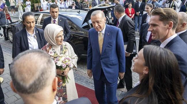 Cumhurbaşkanı Erdoğan ve eşi Emine Erdoğan'ı, Vilnius Havalimanı'nda, Türkiye'nin Vilnius Büyükelçisi Görkem Barış Tantekin, Türkiye'nin NATO Daimi Temsilcisi Büyükelçi Zeki Levent Gümrükçü ve diğer yetkililer karşıladı.