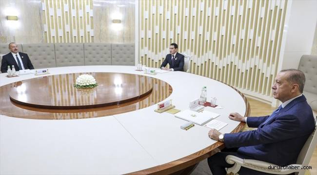 Cumhurbaşkanı Erdoğan, yaptığı ikili görüşmelerin ardından, Azerbaycan Cumhurbaşkanı İlham Aliyev ve Türkmenistan Devlet Başkanı Serdar Berdimuhamedov ile liderler toplantısında bir araya geldi.