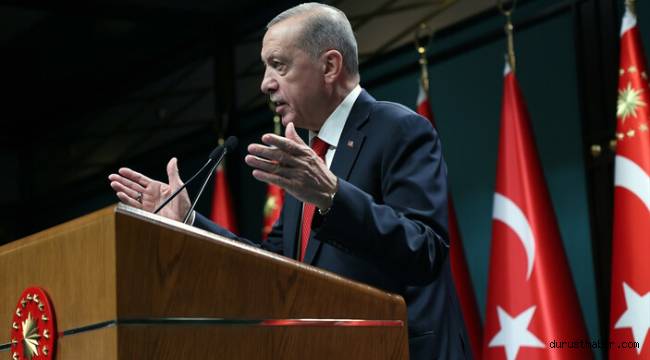 Cumhurbaşkanı Erdoğan, Cumhurbaşkanlığı Külliyesi'ndeki Kabine Toplantısı'nın ardından millete seslendi."Siyasi, ekonomik, askeri olarak güçlenen bir Türkiye fotoğrafı kimsenin işine gelmiyor. Bu yüzden de sürekli gizli, açık engellemelere, kural dışı uygulamalara maruz kalıyoruz."diyen Erdoğan, sözlerini şöyle sürdürdü: