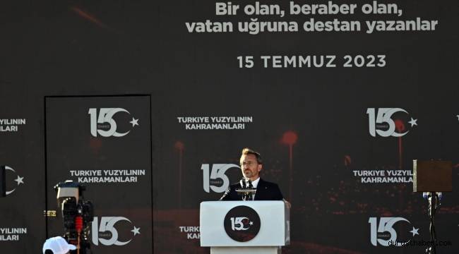 Fahrettin Altun, 15 Temmuz Demokrasi ve Milli Birlik Günü kapsamında Cumhurbaşkanlığı İletişim Başkanlığı, İstanbul Valiliği ve Üsküdar Belediyesi işbirliğinde Beylerbeyi Stadyumu'nda düzenlenen "Türkiye Yüzyılının Kahramanları" programında, ülkenin hain bir darbe girişimiyle karşı karşıya kaldığını anımsattı.Altun, "15 Temmuz, asker üniforması girmiş teröristlerin bir darbe girişimiydi. Esasında 15 Temmuz darbe görünümlü bir işgal girişimiydi." diye konuştu.15 Temmuz'da bu ülkeye diz çöktürmek isteyen müstevliler ile emperyalistlerin eli kanlı bir terör örgütünü maşa ettiklerini vurgulayan Altun, şöyle devam etti:"15 Temmuz, özgür ve bağımsız Türkiye'yi ortadan kaldırma girişimiydi. 15 Temmuz, istiklalimize ve istikbalimize vurulmuş bir darbeydi. 15 Temmuz, milletin kalbine sokulmaya çalışılan bir hançerdi. Ve fakat bu aziz millet ne hain terör örgütü FETÖ'ye ne de onun hamisi olan emperyalistlere fırsat verdi. Bu aziz millet lideri Recep Tayyip Erdoğan ile birlikte terörizmi, darbecileri, işgalcileri tepeledi. 15 Temmuz bu yönüyle milletin zaferinin adıdır. 15 Temmuz bu yönüyle milli iradenin gücünün tescilidir. Türkiye'de demokrasinin ne denli köklü ne denli köklü olduğunun kanıtıdır. 15 Temmuz bu yönüyle milli birlik ve bütünlüğümüzün simgesidir. 15 Temmuz bu yönüyle mazlumların umudur emperyalistlerin kabusudur. 15 Temmuz bir destandır, milletin lideriyle birlikte yazdığı bir destan."Altun, Cumhurbaşkanı Recep Tayyip Erdoğan'ın "Ben milletin gücünün üstünde bir güç tanımadım bugüne kadar. Milletimi ülkemin meydanlarına davet ediyorum. Çıksınlar ve bu hainlere hadlerini bildirsinler." ifadeleri üzerine milletin de bu çağrıya cevap verdiğini, FETÖ ve arkasındaki emperyalistlerin başarılı olamadığını belirtti.Milletin 15 Temmuz'da dünya siyaset tarihine, dünya demokrasi tarihine geçecek şanlı bir direniş sergilediğini aktaran Altun, "Bu şanlı direnişin bütün kahramanlarına selam olsun. Şehitlerimizin ruhu şad olsun. Mekanları cennet, makamları ali olsun. En başta şehitlerimiz ve elbette gazilerimiz ve yine o gün canını düşünmeden ülkesi, milleti, ümmeti için sokaklara, meydanlara çıkan kahramanlarımız Türkiye Yüzyılı'nın kahramanlarıdır." dedi."15 Temmuz kahramanları bize Türkiye Yüzyılı'nı hediye eden kahramanlardır"