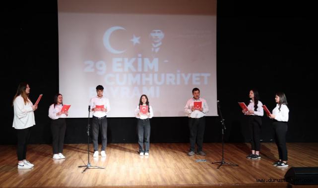 Saygı duruşu ve İstiklal Marşı’nın ardından öğrenciler tarafından şiirler ve oratoryolar sergilendi, Cumhuriyet temalı videolar ise salondakilerden büyük alkış aldı.