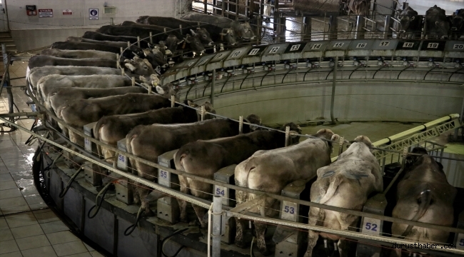 Tarım İşletmeleri Genel Müdürlüğüne (TİGEM) bağlı Konya'daki Gözlü Tarım İşletmesinde, el değmeden 1500 hayvanın sağımı yapılıyor, günlük 35 ton süt üretiliyor.