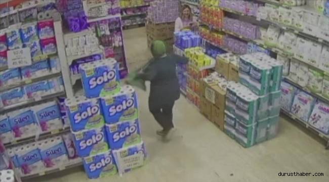 Akkonak Mahallesi'ndeki bir süpermarkete alışveriş için giren kadın, içeride çalan müziği duyunca ceketini çıkararak dans etmeye başladı.