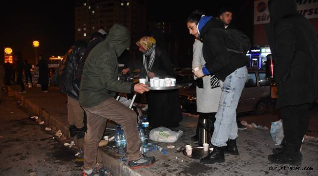 Kayseri – Malatya girişinde kente giren araçlara çay dağıtımı yapan Turgay Topal, “Gündüzleri fırında çalışıyorum. Depremzedeler için ekmek yapıyoruz. İşten sonra da buraya gelip çay ikram ediyorum. Mimsin, Beyazşehir ve İldem bölgesinde ev hanımları çorba yapıp tencerelerle getiriyor. Su ve meyve alan getiriyor. Deprem bölgesinden gelenlere her türlü yiyecek içecek ikram ediliyor. Çocuklar için mama ve bez dağıtılıyor. Hiçbir şey yapamayan ısınmak için yaktığımız ateşe odun getiriyor. Bugün orada yaşanan felaket yarın burada yaşanabilir o nedenle herkes elinden geleni yapıyor “ açıklamasında bulundu.