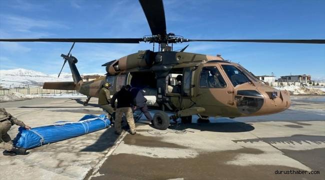 Yardım malzemeleri, daha hızlı götürülmesi amacıyla askeri helikopterlerle taşınıyor. Helikopterle 9 Şubat-2 Mart tarihleri arasında 84 bin 170 kilogram yardım malzemesi taşınırken 634 çadır da ihtiyaç sahiplerine ulaştırıldı. 125 sorti gerçekleştiren helikopterler, ilçe merkezlerine uzak mahallelere de yardımları götürdü.