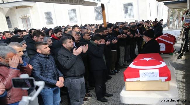 Otopsi işlemlerinin adından merkez Meram ilçesindeki Kurtuluş Camisi'ne getirilen Cemal Kütahya ile oğlunun cenazesini yakınlarının yanı sıra Türkiye Hentbol Federasyonu Başkanı Uğur Kılıç, A Milli Erkek Hentbol Takımı oyuncuları ile çok sayıda vatandaş karşıladı.Cenaze töreni öncesi Cemal Kütahya ile oğlunun tabutlarına sarılan yakınları gözyaşı döktü. Bu sırada, 5 yaşındaki Çınar'ın babaannesi Gülay Kütahya, torununun sarıldığı tabutun üzerine oyuncak arabasını bıraktı.Baba ile oğlunun cenazesi, öğle vakti kılınan cenaze namazının ardından Kurtuluş Mezarlığı'nda toprağa verildi.Uğur Kılıç, gazetecilere, Türkiye ve Türk sporunun, vatansever, yetenekli ve koca yürekli bir sporcusunu kaybettiğini söyledi.Çok üzgün olduklarını belirten Kılıç, "Kelimelerle ifade etmek zor. Hepimizin başı sağ olsun. Mekanları cennet olsun. Hentbol camiası da burada. Birçok takımdan arkadaşı da onu yalnız bırakmadı. Hepimiz son yolculuğuna uğurlamak için bir aradayız." dedi.Cemal Kütahya, 2022'de Konya'da düzenlenen İslami Dayanışma Oyunları'nda ikinci olan A Milli Hentbol Takımı'nın kaptanlığını yapmıştı.Aynı zamanda Plaj Hentbolu Milli Takımı'nda kaptanlık yapan 33 yaşındaki Kütahya, 2019 ve 2021 BH ECh organizasyonlarında gol kralı olmuştu. Kütahya, 2015 yılında İtalya'nın Pescara kentinde düzenlenen Akdeniz Plaj Oyunları'nda üçüncü olan milli takımın kadrosunda da yer almıştı.Salon ve plaj hentbolunda toplamda 150'den fazla milli maça çıkan Cemal Kütahya, son olarak Özel Vefakent Hatay Büyükşehir Belediyesi Spor Kulübü'nde forma giyiyordu.