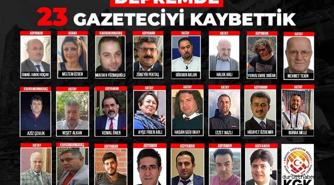 KÜRESEL Gazeteciler Konseyi (KGK) Genel Başkanı Mehmet Ali Dim, deprem bölgesindeki gazetecilerle sürekli iletişim halinde olduklarını belirterek, “Her gün yeni bir acı haberle sarsılıyoruz. Deprem nedeniyle yaşamını yitiren gazetecilerin sayısı maalesef 23 oldu. Henüz haber alınamayan meslektaşlarımız var. Yaralı olarak kurtulanlar ve tedavisi devam edenler var Kurtarma ve enkaz kaldırma çalışmaları sürerkenkorkarım ki, yeni acı haberler alacağız. Vefat eden meslektaşlarımızı rahmetle anıyoruz. Kayıplarımızın daha da artmaması ortak duamızdır” dedi.