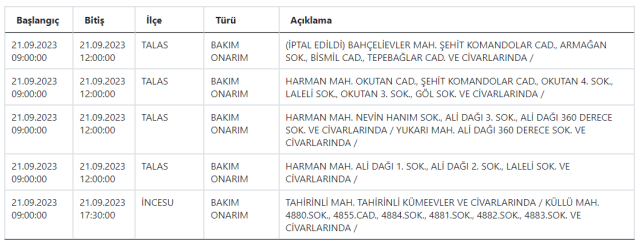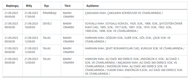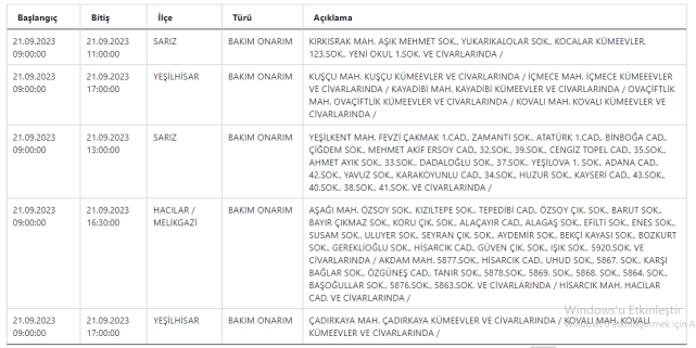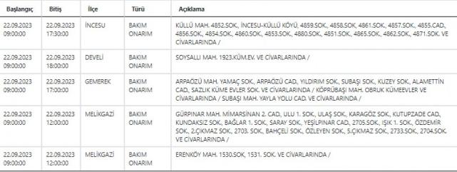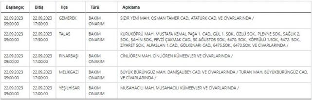 KCETAŞ Kayseri'de elektrik kesintisi yaşanacağı uyarısında bulundu. 21-22 Eylül 2023 tarihinde mahallelerde elektrik kesilecek? İşte detaylar…Kayseri'de yarın hangi mahallelerde elektrik kesintisi yaşanacak? 21-22 Eylül 2023KCETAŞ’tan edinilen bilgilere göre yarın (21-22 Eylül 2023) aşağıdaki ilçe ve mahallelerde elektrik kesintisi yaşanacak.