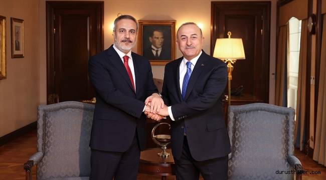 Çavuşoğlu, şimdi bayrağı devretme sırası olduğunu dile getirerek, "8 yıl 6 ay 13 gün taşıdığım Dışişleri Bakanlığı bayrağını değerli kardeşim Hakan Fidan'a devrediyorum. Hakan kardeşim uluslararası ilişkilerin teorisi kadar pratiğine de hakim bir dava arkadaşımdır." ifadesini kullandı.Dışişleri Bakanlığı ve MİT'in çalışma ilkeleri ve kurum kültürü itibarıyla birbirine benzeyen, büyük Türk milletinin hizmetkarı iki güzide kurum olduğuna dikkati çeken Çavuşoğlu şunları kaydetti:"En zor coğrafyalarda, en hassas konularda devletimizin ve milletimizin bekasını birlikte koruduk. Başta FETÖ ve PKK olmak üzere yurt dışındaki terör şebekelerine karşı birlikte mücadele ettik. Kendisinin idaresinde Türk Hariciyesi, Türkiye'nin küresel aktör konumunu pekiştirme yönündeki yürüyüşüne kararlılıkla devam edecektir. Ben de her zaman Bakanlığımızın emrinde olacağım ve desteğe hazır olacağım." şeklinde konuştu.Dışişleri Bakanlığı boyunca kendisine omuz veren tüm mesai arkadaşlarına, Türk Hariciyesinin her bir neferine, topyekün diplomasi icra ettikleri tüm kurumlara, iş dünyasına, özellikle de öğrencilere, bütün vatandaşlara, eşi Hülya Hanım ve kızı Eylül İrem'e teşekkür eden Çavuşoğlu, "Birlikte yürümekten şeref duyduğum sayın Cumhurbaşkanımızın liderliğinde şimdi görevimiz, Türkiye Yüzyılı'nı inşa etmektir. Yolunuz, yolumuz açık olsun. Hoşçakalın, Allah'a emanet olun." dedi.