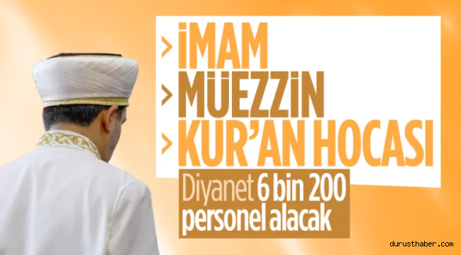 Diyanet İşleri Başkanlığının 6 bin 200 sözleşmeli Kur'an kursu öğreticisi, imam hatip ve müezzin kayyım alımına ilişkin ilanı Resmi Gazete'de yayınlandı.
