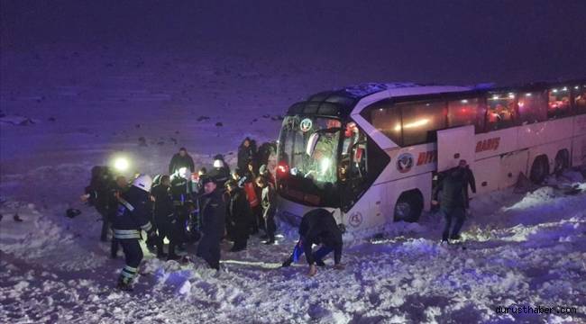 Diyarbakır'da yolcu otobüsü buzlanma nedeniyle şarampole düştü