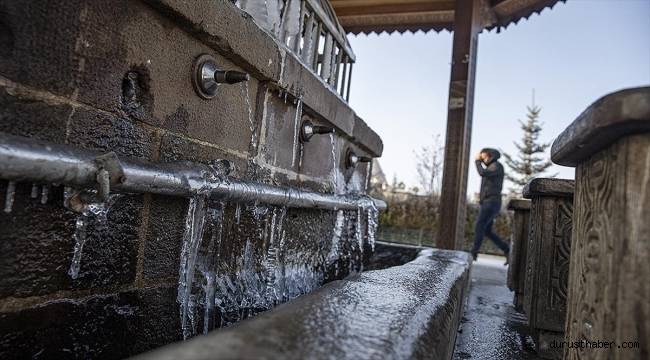 Soğuk havanın da hakim olduğu kentte, bazı camilerin şadırvanları ile çeşmelerde buzlanma oluştu.