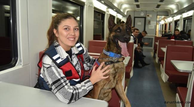 Eğitmeni Jandarma Uzman Çavuş Emrah Derendeli'nin "otur", "kalk", "arama yap" gibi komutları yerine getiren hassas burun, sevimli halleriyle yolcuların ilgi odağı oluyor."Çapkın"la fotoğraf çektirip sevgi gösterisinde bulunan yolcular, seyahatlerini hem güvende hem de keyifli tamamlıyor.Göreve İzmir İl Jandarma Komutanlığında başlayan "Çapkın", 2019'da geldiği Kars'ta güvenlik güçleriyle birçok operasyona katılarak, yüzlerce silahın yakalanmasında da rol oynadı.Ayrıca trende asayiş uygulaması yapan jandarma personeli, kadınları ise KADES uygulaması hakkında bilgilendiriyor.Tren yolcularından Nur Şenyürek Çolak, AA muhabirine, Doğu Ekspresi'yle Ankara'dan Kars'a geldiklerini daha sonra memleketi Rize'ye gideceklerini söyledi."Çapkın'ı görünce çok mutlu olduk"