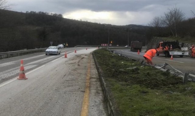 Düzce'de kontrolden çıkan tır orta refüjü aşıp karşı şeride geçti.Kabalak Mevkii'nde yaşanan kazada trafiğin yoğun olmaması büyük bir felaketin önüne geçti.Kaza sonrasında tır sürücüsü hafif şekilde yaralanırken, olay yerine Jandarma ekipleri sevk edildi.Trafik kontrollü şekilde sağlanırken ekipler kaza ile ilgili inceleme başlattı.