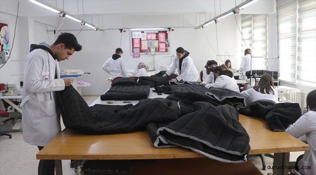 Meslek lisesinin moda tasarım teknolojileri atölyesinde öğretmen ve öğrenciler, soğuk havanın etkili olduğu deprem bölgesindekilere destek olmak için kolları sıvadı.