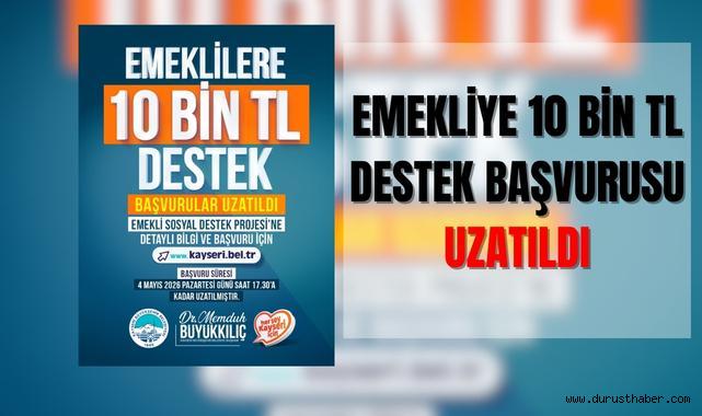 Kayseri Büyükşehir Belediyesi, dar gelirli emeklilere yönelik hayata geçirilen 10 bin TL’lik nakdi sosyal destek programında başvuru süresinin uzatıldığını açıkladı. Buna göre başvurular 4 Mayıs 2026 Pazartesi günü saat 17.30’a kadar devam edecek.