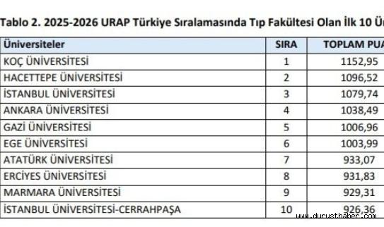 Tıp Fakültesi kategorisinde Koç Üniversitesi (1153 puan) ilk sırayı alırken, Erciyes Üniversitesi 932 puanla 8. oldu.