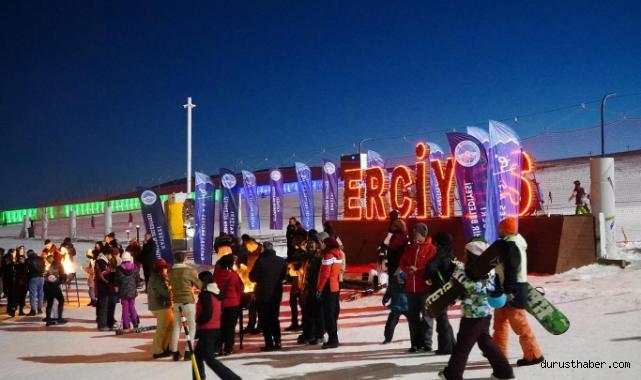 Erciyes Kayak Merkezi’nde yeni yıl öncesi yerli her yılbaşı yapılan gece kayağı bugün de yapıldı.