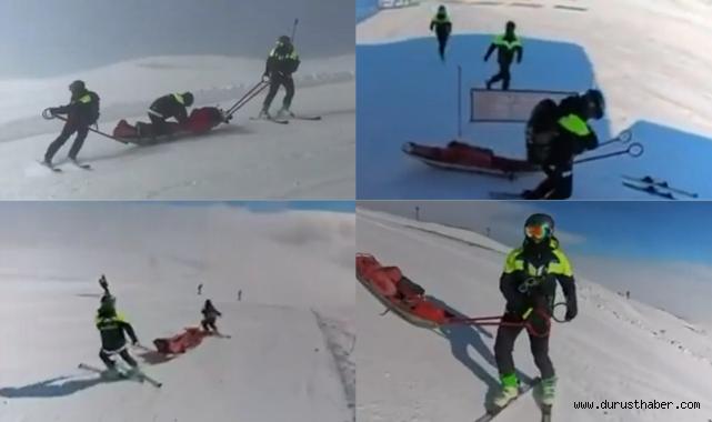 Paylaşımda, olası bir kazaya müdahale sürecinin nasıl yürütüldüğü gözler önüne serildi. Kayıtlar, ihbarın ardından üç ayrı kurtarma ekibinin merkezden kayaklarla hızla pistlere çıkış yaptığını gösterdi. Ekipler koordineli bir şekilde olay noktasına ulaştı, kısa sürede yaralıya müdahale etti ve kızaklı sedyeyle güvenli şekilde taşıdı. Müdahale sürecinin planlı ve profesyonel şekilde yürütülmesi izleyenlerin dikkatini çekti.