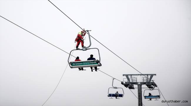 Tatbikatta senaryo gereği, tesislerde çıkan arıza nedeniyle 2 bin 400 metre rakımdaki telesiyejde mahsur kalan 6 kişi, ekipler tarafından halat yardımıyla indirildi. Teknik arıza da ekipler tarafından kısa sürede giderildi. Yaklaşık bir saat süren tatbikatta 60 kişi görev aldı.