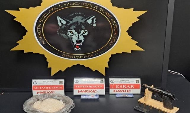 Eskişehir'de polislerce durdurulan tırda uyuşturucu ele geçirildi, olaya ilişkin 4 şüpheli yakalandı. Kente uyuşturucu ticaretini önlemek amacıyla çalışma başlatan İl Emniyet Müdürlüğü Narkotik Suçlarla Mücadele Şube Müdürlüğü ekipleri, il dışından gelen bir tırı durdurdu.Yapılan aramada, 246,72 gram sentetik uyuşturucu, bir miktar esrar, 2 sentetik ecza, hassas terazi, ruhsatsız tabanca ve 5 fişek ele geçirildi.Olayla ilgili Ö.Ö, O.G, E.Y. ve H.A. gözaltına alındı.Emniyetteki işlemleri tamamlanan 4 şüpheli, "Uyuşturucu madde ticareti" suçundan adliyeye sevk edildi.Şüphelilerden E.Y. hakkında ayrıca "Ateşli silahlar ve bıçaklar" kanunu kapsamında işlem başlatıldı.