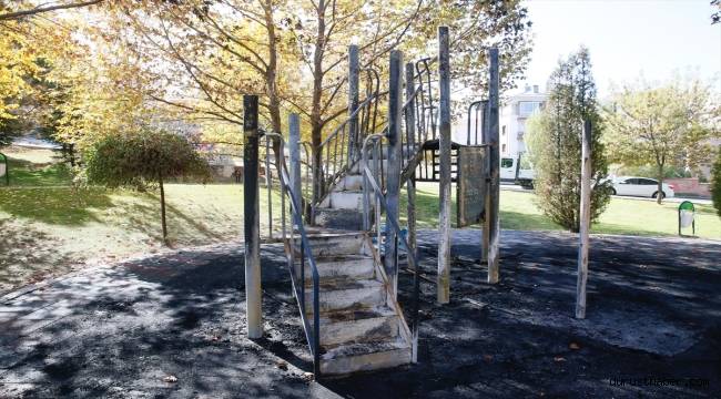 Eskişehir'de yanıcı madde dökülerek ateşe verilen çocuk oyun parkı, kullanılamaz hale geldi.