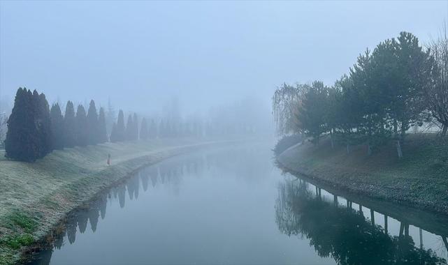 3. Eskişehir'den geçen Porsuk Çayı sisle kaplandı