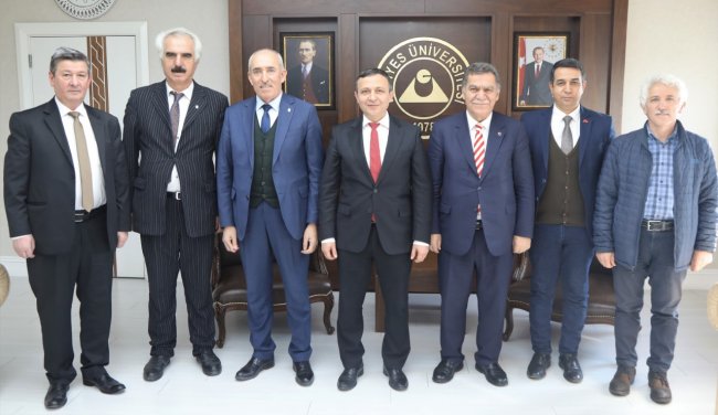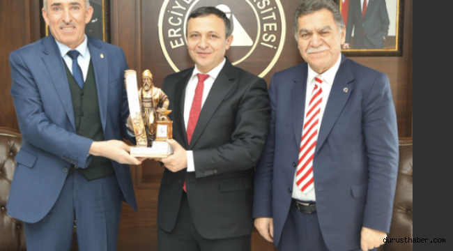 Esnaf Kefalet ve Kredi Kooperatifi Başkanı Mustafa Alan beraberindeki Oto Sanatkârlar Odası Başkanı Şeyhi Odakır, Minibüsçüler ve Servis İşletmecileri Esnaf Odası Başkanı Yavuz Ay, Berberler ve Kuaförler Odası Başkanı Rıfat Alparslan ve Halıcılar Odası Başkanı Ercan Efilti ile  ERÜ Rektörü Prof. Dr. Mustafa Çalış’ı makamında ziyaret ettiler.
