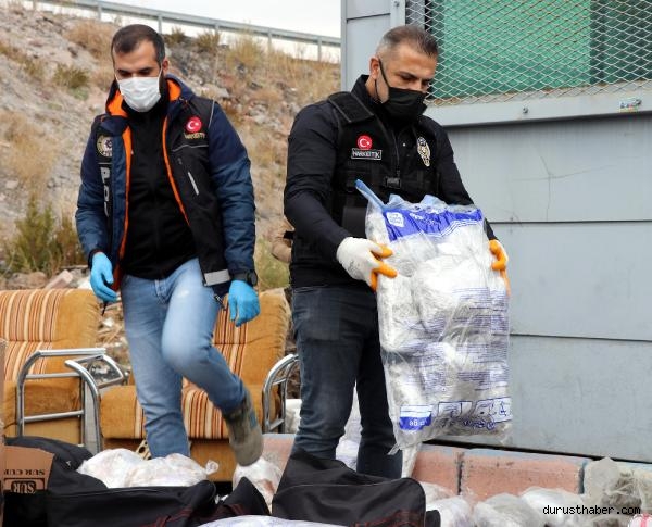 KAYSERİ'de narkotik polisinin kent sınırları içinde takip edip durdurduğu eşya yüklü kamyonetin kasasında piyasa değeri 2 milyon TL'yi bulan 100 kilo esrar ve skunk maddesi ele geçirildi. Uyuşturucuları batı illerine götürdüğü belirlenen sürücü M.K. gözaltına alındı.