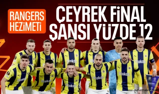 Temsilcimiz Fenerbahçe, UEFA Avrupa Ligi son 16 turu ilk maçında İskoç takımı Rangers'a 3-1 mağlup oldu.Kadıköy'de oynanan karşılaşmada tur şansını zora sokan sarı-lacivertilerin, çeyrek finale çıkma ihtimali açıklandı.Ünlü futbol veri sitesi Football Meets Data, Fenerbahçe-Rangers karşılaşması sonrası iki takımın çeyrek final oynama şansını hesapladı.Buna göre Rangers'ın tur şansı yüzde 88 olarak gösterildi. Fenerbahçe'nin İskoçya'da Rangers'ı devirerek çeyrek finale yükselme ihtimali ise yüzde 12 olarak belirlendi.RÖVANŞ İSKOÇYA'DAFenerbahçe, 13 Mart Perşembe saat 23.00'te Ibrox Stadyumu'nda Rangers'la karşı karşıya gelecek.