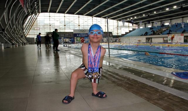 Kayseri'de, fizyoterapisti aracılığıyla 6 ay önce yüzme sporuna başlayan doğuştan kolları olmayan, sol bacağı kısa 10 yaşındaki İbrahim Akbulut, ilk kez katıldığı Paralimpik Yüzme Bölge Şampiyonası'nda 4 altın, 4 gümüş madalya kazanmanın gururunu yaşıyor.Engeline rağmen yaşama sevincini hiç yitirmeyen İbrahim, rehabilitasyon merkezindeki fizyoterapisti aracılığıyla Gençlik ve Spor İl Müdürlüğü yüzme antrenörü Safiye Kayabal ile tanıştı.İl Müdürlüğünün olimpik havuzunda 6 ayda yüzmeyi öğrenen Osman Kavuncu Ortaokulu 5. sınıf öğrencisi İbrahim, ilk sınavını 19-20 Ekim'de Türkiye Yüzme Federasyonu tarafından Mersin'de düzenlenen Paralimpik Yüzme Bölge Şampiyonası 1. Bölge yarışmalarında verdi.İbrahim, 10-13 yaş kategorisinde 50 metre serbest, 50 metre sırt üstü, 100 metre serbest ve 100 metre sırt üstünde birincilik kürsüsüne çıkarken bu 4 kategoride genel klasmanda da 4 gümüş madalya kazanmayı başardı.- "İlk yarışmalarımda 8 madalya kazandım"İbrahim Akbulut, AA muhabirine, yüzmeyi öğrendikten sonra hayatının değiştiğini söyledi.Antrenörü Safiye Kayabal'ın kendisine yüzme öğrettiğini anlatan İbrahim, "Öğretmenime yüzmek istediğimi söyledim, o da yardım etti. Hedeflerim arasında ilk önce Türkiye birincisi olmak vardı, bunu başardım. İlk yarışmamda 4 altın, 4 gümüş madalya kazandım. Dünya şampiyonu olmayı hedefliyorum." dedi.İbrahim, antrenörünün desteğiyle daha büyük başarılar için havuzda antrenmanlarını sürdürdüğünü dile getirdi.- "Milli takıma doğru yol alacağız"Antrenör Safiye Kayabal da İbrahim'in yüzmeye yeteneği olduğunu anlatarak, "İbrahim'in fizyoterapisti beni aradı, ondan bahsetti, kollarının olmadığını söyledi, 'Yüzebilir mi?' dedi. 'Görmem lazım' dedim. Havuza geldi, tanıştık. Sonra yüzmeye başladık. Yeteneği olduğu için çok da güzel yüzüyor. Yarışlara da katıldı, inşallah milli takıma doğru yol alacağız." diye konuştu.- "Madalyaları aldı, öz güveni geldi"İbrahim'in, yüzmeye başlayıp bu sporda madalya kazanmasıyla öz güveninin de arttığına dikkati çeken Kayabal, şunları kaydetti:"İbrahim, çok pozitif bir çocuk. Kesinlikle engeliyle bir problemi yok. İbrahim 6 ayır benimle yüzüyor. Onu yarışmalara hazırlamaya başladım. Antrenmanlarımız tam gaz devam ederken İbrahim bir ameliyat geçirmek zorunda kaldı. 2 ay antrenmanlara katılamadı ancak yarışlara gittik, 8 madalya aldık, 4 birinciliği, 4 ikinciliği var. Madalyaları aldıktan sonra öz güveni geldi. Yüzme sporuna başlayıp madalyaları alınca arkadaşlarının da bakış açısı değişti. Ailesiyle bizler çok mutluyuz. Bizlerin hedefi milli takım. Türk bayrağımızı dalgalandırmak istiyoruz."Anne Neriman Akbulut ise oğlunun yüzmeyi çok sevdiğini belirterek, kazandığı madalyalarla tüm ailenin gururlandığını söyledi.