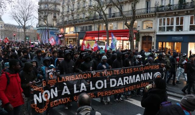 Göstericiler, başkent Paris'te Cumhuriyet Meydanı'nda bir araya geldi. Çok sayıda gencin ve göçmenin katıldığı gösteride, "Göçmenlerle Dayanışma" sloganları atıldı.Göstericiler, "ırkçı" buldukları tasarıyı, göçmen ve göçmen asıllı kişilere yönelik kuralları katılaştırdığı gerekçesiyle eleştirdi.Hükümetin, aşırı sağın oylarıyla Parlamentodan geçirdiği söz konusu tasarıdan vazgeçmesini talep eden göstericiler, "Hoş geldiniz göçmenler" ve "Özgürlük" yazılı dövizler taşıdı. Bazı göstericiler İçişleri Bakanı Gerald Darmanin'in savunduğu göç tasarısına tepkilerini dans ederek ve şarkı söyleyerek gösterdi.Ülkede bu hafta Lyon, Toulouse gibi farklı kentlerde de tasarıya tepki veren Fransızlar sokağa inerek gösteri düzenlemişti.Tasarıda neler var ?Tasarı metnine göre, çalışan yabancılar Fransa'ya geldikten 3 ay sonra, çalışmayanlar ise 5 yıl sonra kira desteğinden faydalanabilecek.Yasa tasarısı kapsamında güvenlik güçlerine karşı suç işleyen çifte vatandaşlar, Fransız vatandaşlığından çıkarılabilecek. Aile birleşimi için gerekli koşulları zorlaştıran tasarıyla birlikte, eğitim için Fransa'ya gelen yabancı öğrencilerden depozito alınacak.Bu depozito söz konusu öğrencilerden biri hakkında Fransız topraklarından uzaklaştırma kararı alındığında geri dönüş masraflarını karşılamayı amaçlıyor. Muhabir: Esra Taşkın