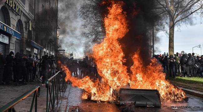 Fransa'da hükümetin, emeklilik yaşının 62'den 64'e çıkarılmasını içeren yasa tasarısını oylama yapmadan Meclisten geçirme kararı üzerine 16 Mart'ta başlayan gösteriler devam ediyor.Gösterilere sert müdahale eden polis ile protestocular arasında ülkenin birçok yerinde şiddet olayları yaşanıyor.Ülke genelinde 16 Mart'tan bu yana düzenlenen protestolarda 1000'den fazla kişi gözaltına alındı.