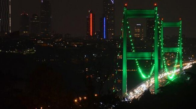 Fatih Sultan Mehmet (FSM) Köprüsü, organ bağışına dikkati çekmek amacıyla yeşil renkle aydınlatıldı.