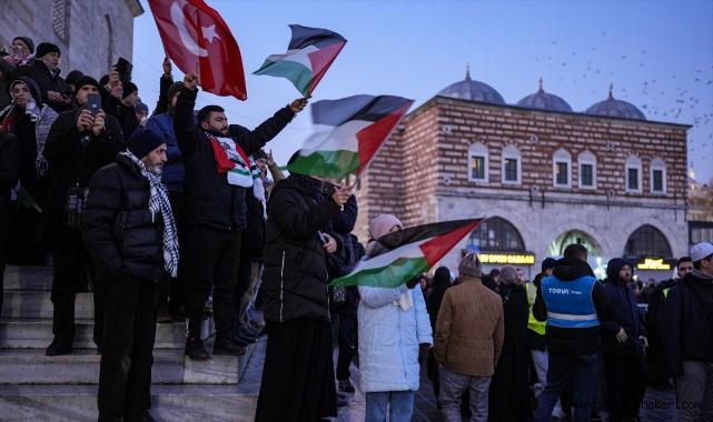Galata Köprüsü'nde Filistin İçin Eylem Düzenleniyor