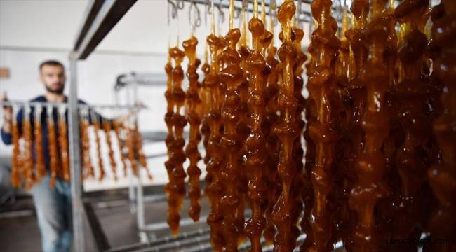 Gaziantep'in ilçelerinin yanı sıra Kilis bölgesinde de yetişen ve "dökülgen" adı verilen üzümlerin suyuyla hazırlanan şıra, beyaz toprakla mayalandırılarak kazanda kaynatılıyor.İplere dizilen ceviz içleri, bulamaç kıvamına gelen şıraya batırıldıktan sonra güneşte kurumaya bırakılıyor.Cevizli sucuk üreten işletmenin sahibi Hüseyin Bayhan, AA muhabirine, cevizli sucuk yapımının kentte yüz yıllardır devam ettiğini belirterek, "Annelerimizden öğrendiğimizi bugün fabrikada üretiyoruz." dedi.Cevizli sucuğun yapımını anlatan Bayhan, "Üzüm, bağlardan hasat edildikten sonra işletmemize geliyor. Yıkandıktan sonra sallarda tepeleniyor. Sonra preste suyu çıkarılıyor. Şerbete beyaz toprak atarak şerbet durultulduktan sonra kazanlarda kaynatılıyor. Nişasta ile bastık çalınıyor. Sonra cevizlerimiz köylerde evlerde saplanıyor. Saplandıktan sonra modern çıtalara bağlıyoruz. Bu işi bu şekilde 8 yıldır yapıyoruz. Taleplere yetişemiyoruz." diye konuştu.Gaziantep'te cevizli sucuğun farkının, ateşinde kullanılan Antep fıstığı kabukları olduğunu dile getiren Bayhan, "Kabukların kalorisi çok yüksek ve çok temiz oluyor, is ve toz olmuyor, çok hijyenik oluyor." ifadelerini kullandı.Bayhan, 15 kişinin istihdam edildiği işletmelerinde yılda yaklaşık 50 ton üretim yapıldığını belirtti.Yaklaşık 8 yıldır cevizli sucuk yapımında çalışan Erdal Çınar da Antep fıstığı kabuğunun avantajlarından bahsederek, "Gaziantep'te cevizli sucuk yapımında ateş yakmada kullandığımız fıstık kabuğu, kazanlara aynı ısıyı saatlerce verdiği ve aromasını sucuklara geçirdiği için Gaziantep sucuklarını Türkiye'nin diğer yerlerinde yapılan sucuklardan farklı kılıyor." dedi.