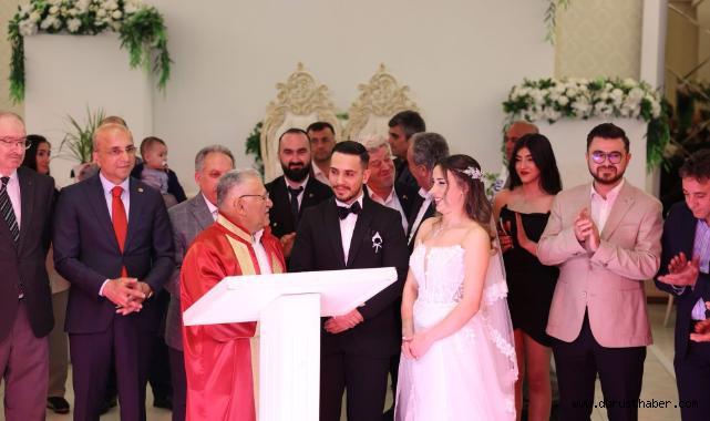 Gazeteci Davut eşi Müzeyyen Güleç, dünürü Güven ve eşi Cemile Sönmez davetlileri kapıda karşılayarak tek tek ilgilendi. Mert Can ve Büşra’nın muhteşem dansı ile başlayan düğünde nikahı Kayseri Büyükşehir Belediye başkanı Memduh Büyükkılıç kıyarken, bazı protokol üyeleri ve davetlilerde nikah şahitliği yaparak genç çifte mutluluklar diledi. Bu arada İstanbul’da oynanan Fenerbahçe-Kayserispor maçının 3-3 tamamlanması düğüne katılanlarda ayrı bir mutluluk yarattı.
